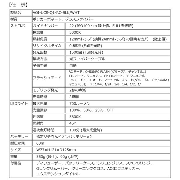 UCS-Q1-RCは、OLYMPUSのデジタルカメラに搭載された「ワイヤレスRC フラッシュシステム」に対応した水中ストロボです。