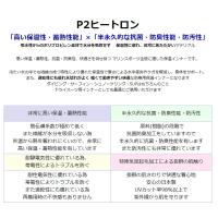 快適性 P2ヒートロンは、耐静電気性に優れている為、 帯電性によるトラブルを防ぐ事ができます。 また、即乾性にも優れている為、 再着用時の不快感も無く、 特殊気密起毛加工による抜群の肌触りを有しています
