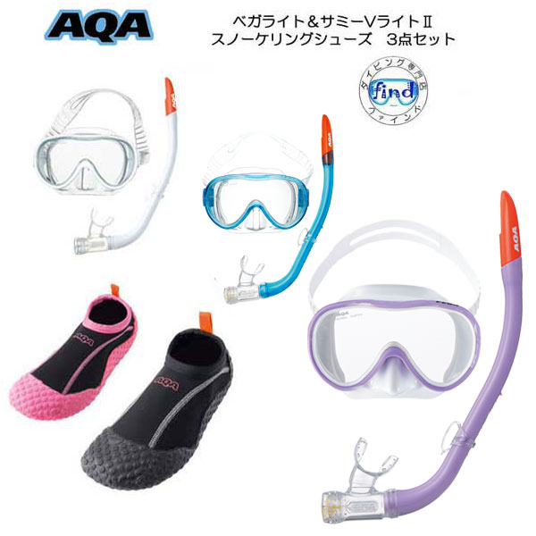 限定特価 即日あり シュノーケル マリンシューズ セット AQA KZ-9072&KW-4472 レディース 大人用 安心の日本製 ベガライト&サミーVライト