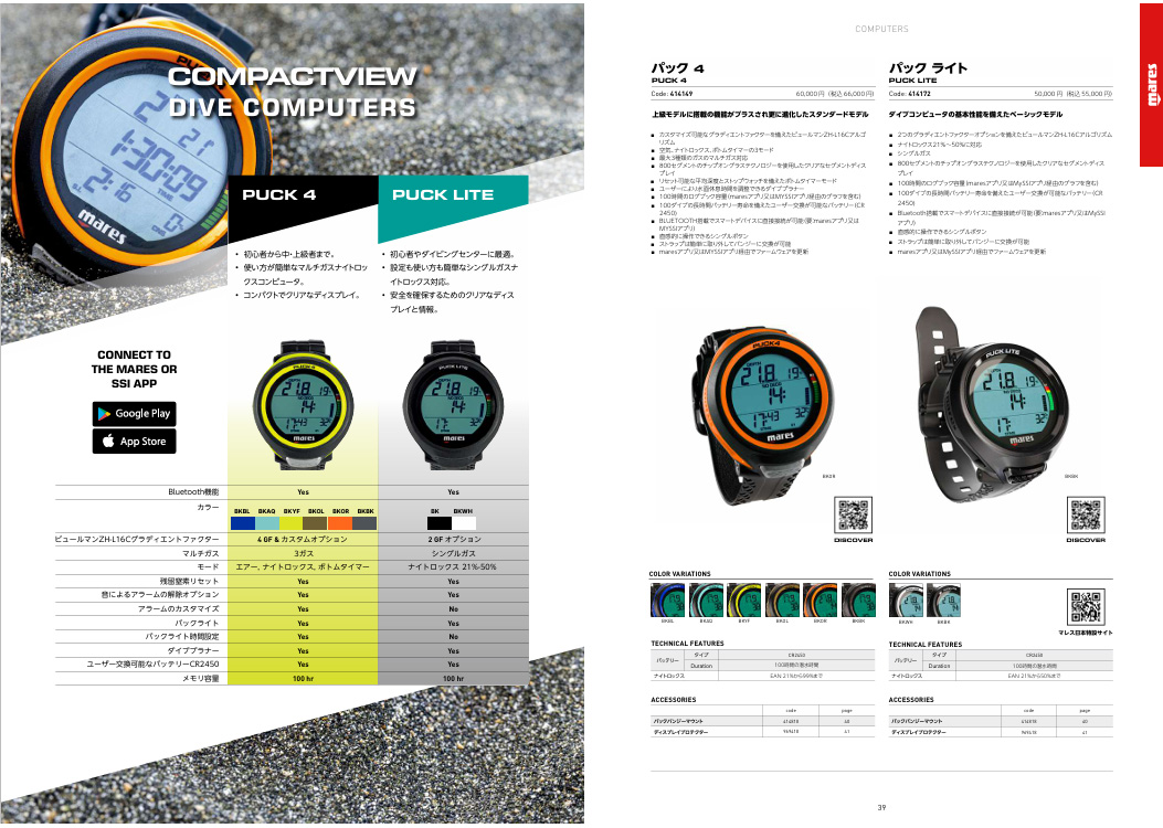 ・100ダイブのログブック容量 (maresアプリ又はMYSSIアプリ経由のグラフを含む)。