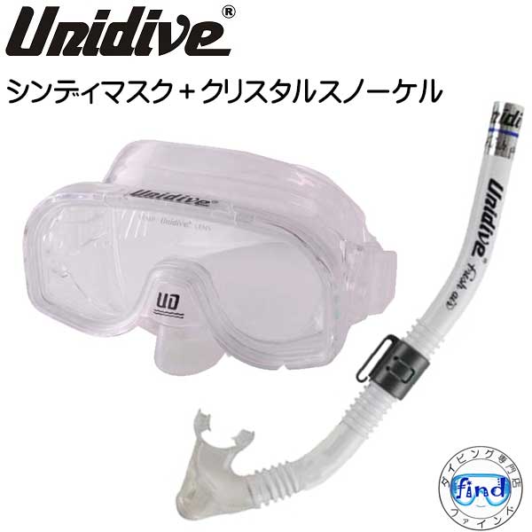シュノーケル 2点セット シンディ マスク クリスタル スノーケル CR WT ダイビング 軽器材2点セット ダイビング 軽器材 シュノーケルセット UNIDIVE