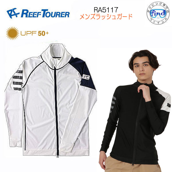 決算セール メンズ ラッシュガード 即日発送 フロントジッパーつき 男性用 長袖 REEF TOURER リーフツアラー RA5117 UV加工素材 UPF+50
