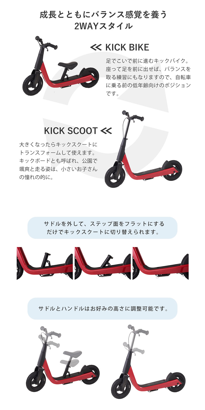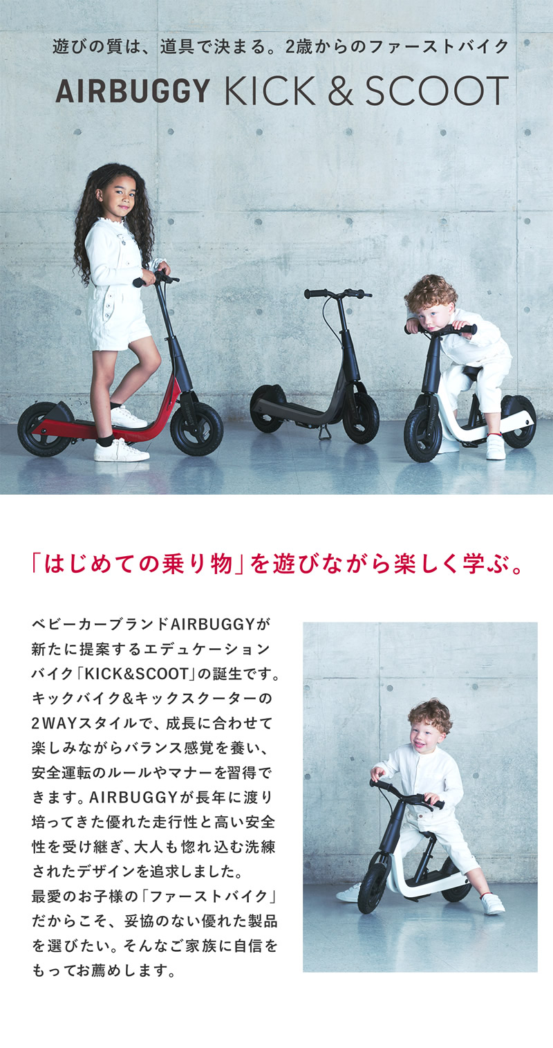 キックバイクからキックスクートへ、成長に合わせて長く使える2WAYエデュケーショナルバイク。