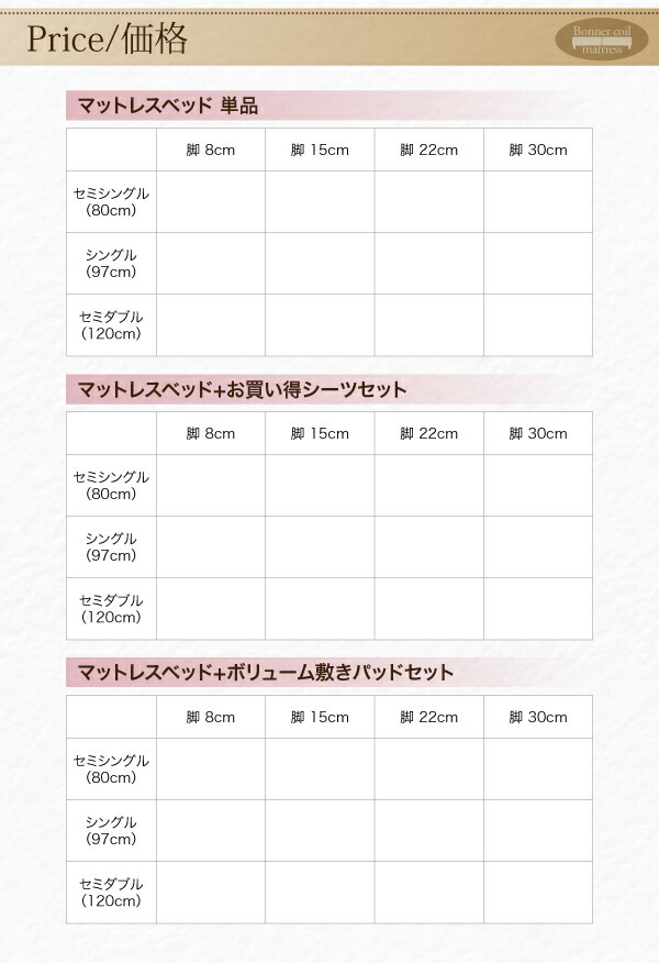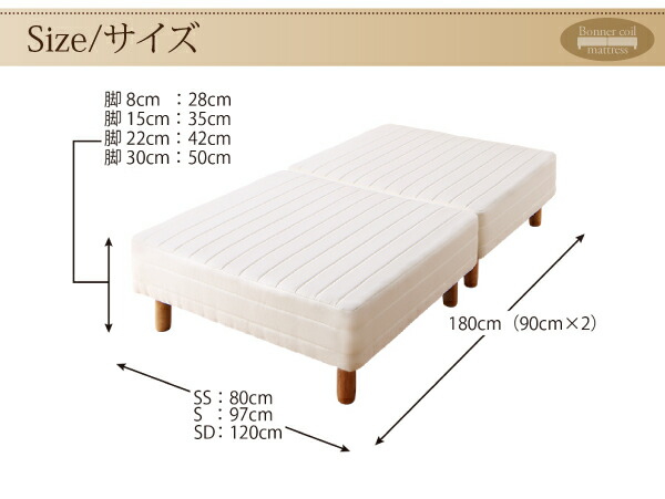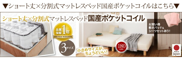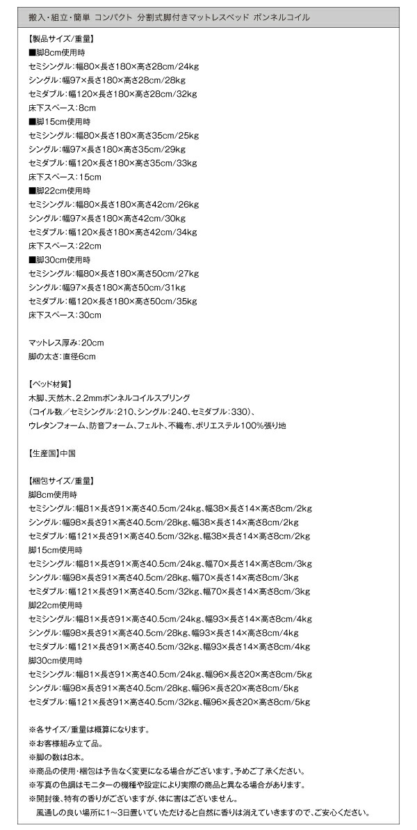 ショート丈分割式 脚付きマットレスベッド ボンネル お買い得ベッドパッド・シーツは別売り セミシングル ショート丈 脚8cm