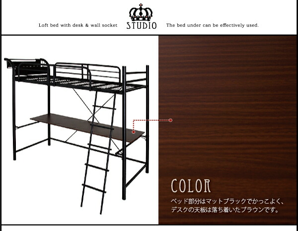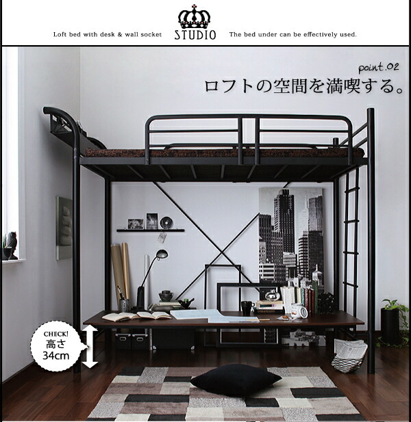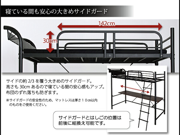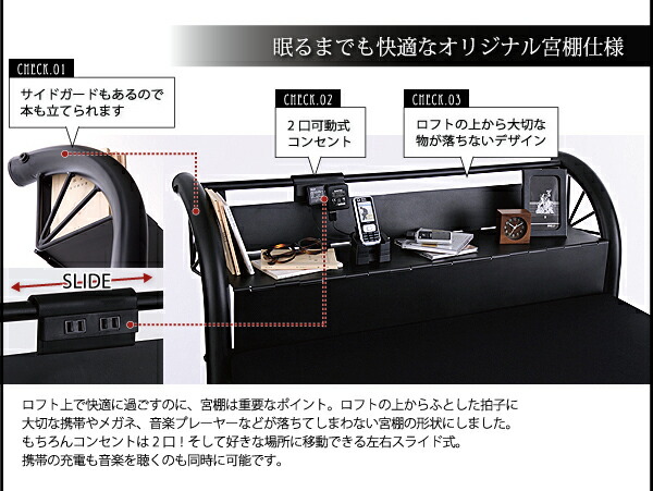 ロフトベッド 階段 階段付き ハイタイプ ロフト ベッド システムベッド パイプ パイプベッド 収納 宮付き コンセント付 組立設置付