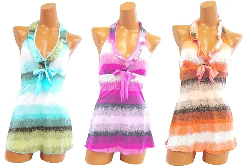 レディース水着 モザイクボーダー柄 ホルターネックワンピース水着3カラー