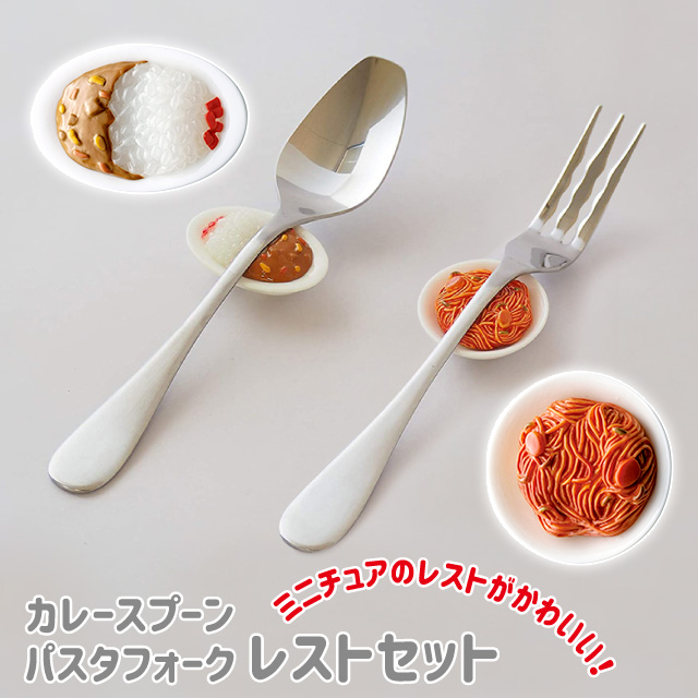 カレー用のスプーンには、カレー型のスプーンレストが。 パスタ用フォークには、パスタ型のフォークレストが。 遊び心あるテーブルコーディネートを演出してくれるカトラリーとレストのセットです。 もちろん遊び心だけじゃなく、機能性も抜群!