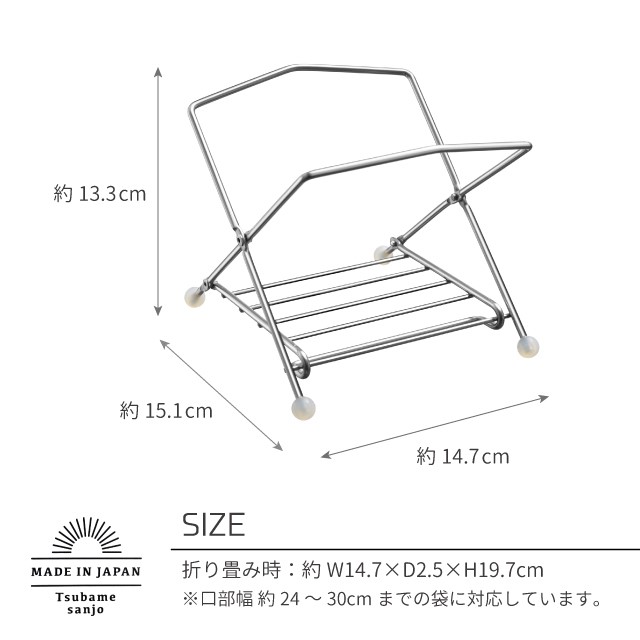 広口ポリ袋ホルダー。 |