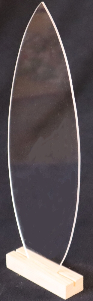ファインホームのトールペイント用無塗装白木素材 アクリル板透明3mm ペイント用素材 サーフ型大 台付き ak-002