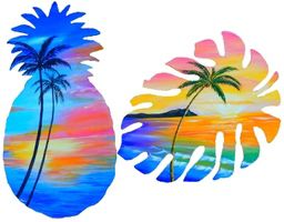 ご自分で描く図案付トールペイント白木素材セット mh-433 ハワイアンプレート リーフ&パイナップル