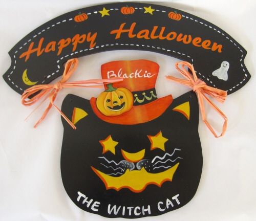 畑田美恵子のご自分で描く図案付トールペイント白木素材セット ハロウィン ウイッチ キャット 2点セット ラフィア付mh-676