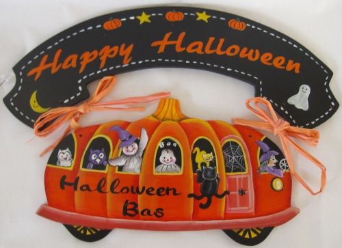 畑田美恵子のご自分で描く図案付トールペイント白木素材セット ハロウィン バス 2点セット ラフィア付 mh-677