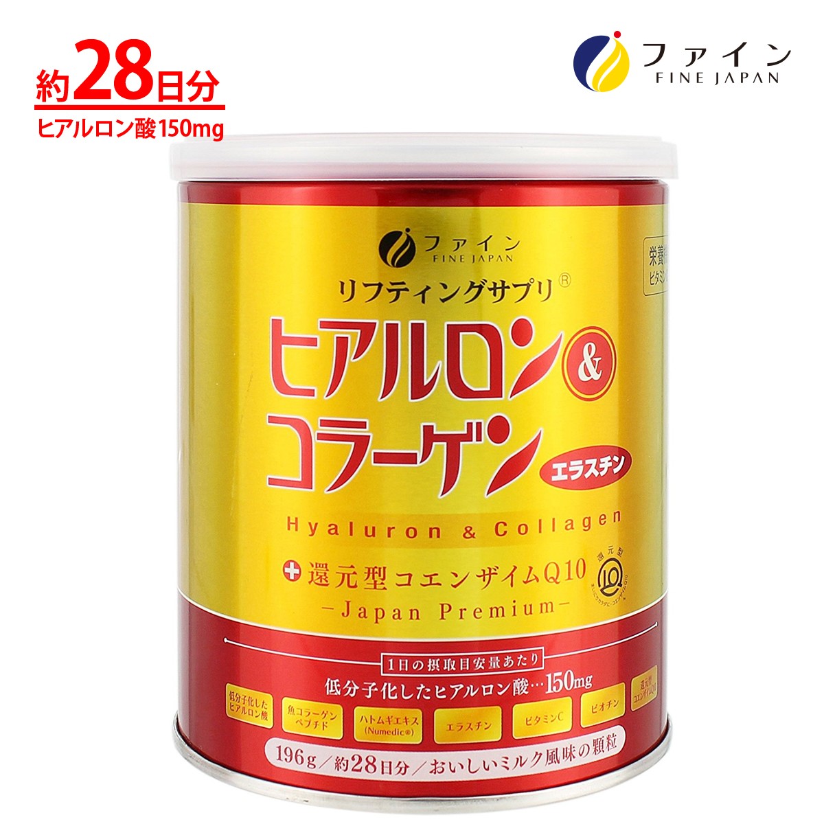 さらにヒアルロン酸を150mg配合、コラーゲン、エラスチンを配合しています。