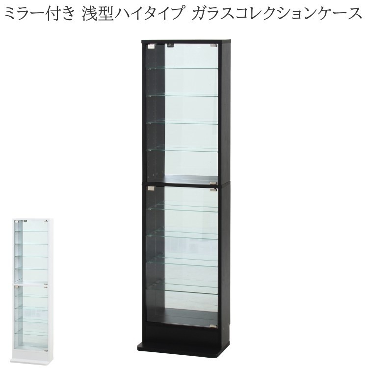 ミラー付 浅型 ガラス コレクション ケース ハイタイプ 幅48.5cm スリム ディスプレイ 強化ガラス リビング コレクション ボード 飾り 収納 ラック 送料無料