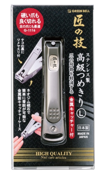 グリーンベル ステンレス製高級つめきりL 金属キャッチャー付G-1116 硬い爪