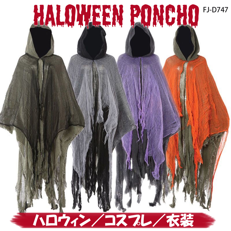 ハロウィンポンチョ コスプレ 衣装 大人 メンズ レディース 死神 幽霊 悪魔 お化け 仮装 変装 恐怖 変装 コスチューム マント 顔隠し ハロウィーン仮装