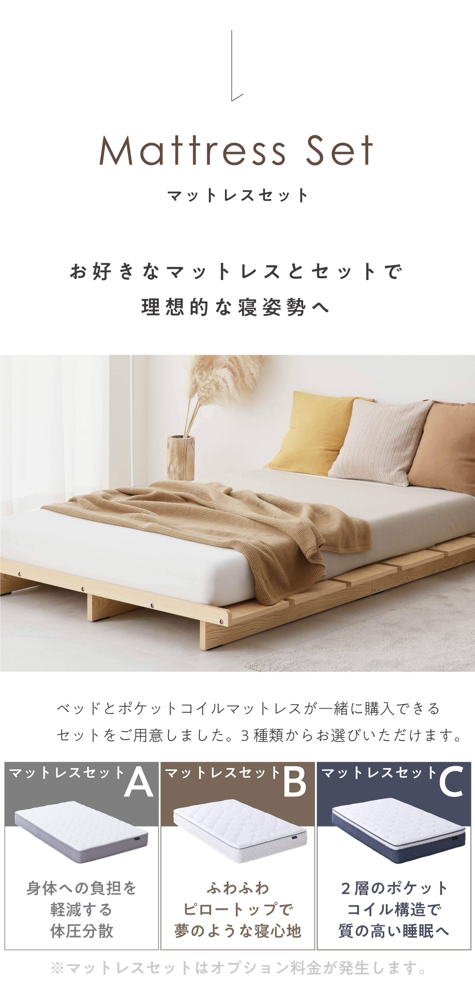 | マットレス対応サイズ | ■シングル:幅約120×奥行き約197cm以内 ■セミダブル:幅約140×奥行き約197cm以内 ■ダブル:幅約160×奥行き約197cm以内 |