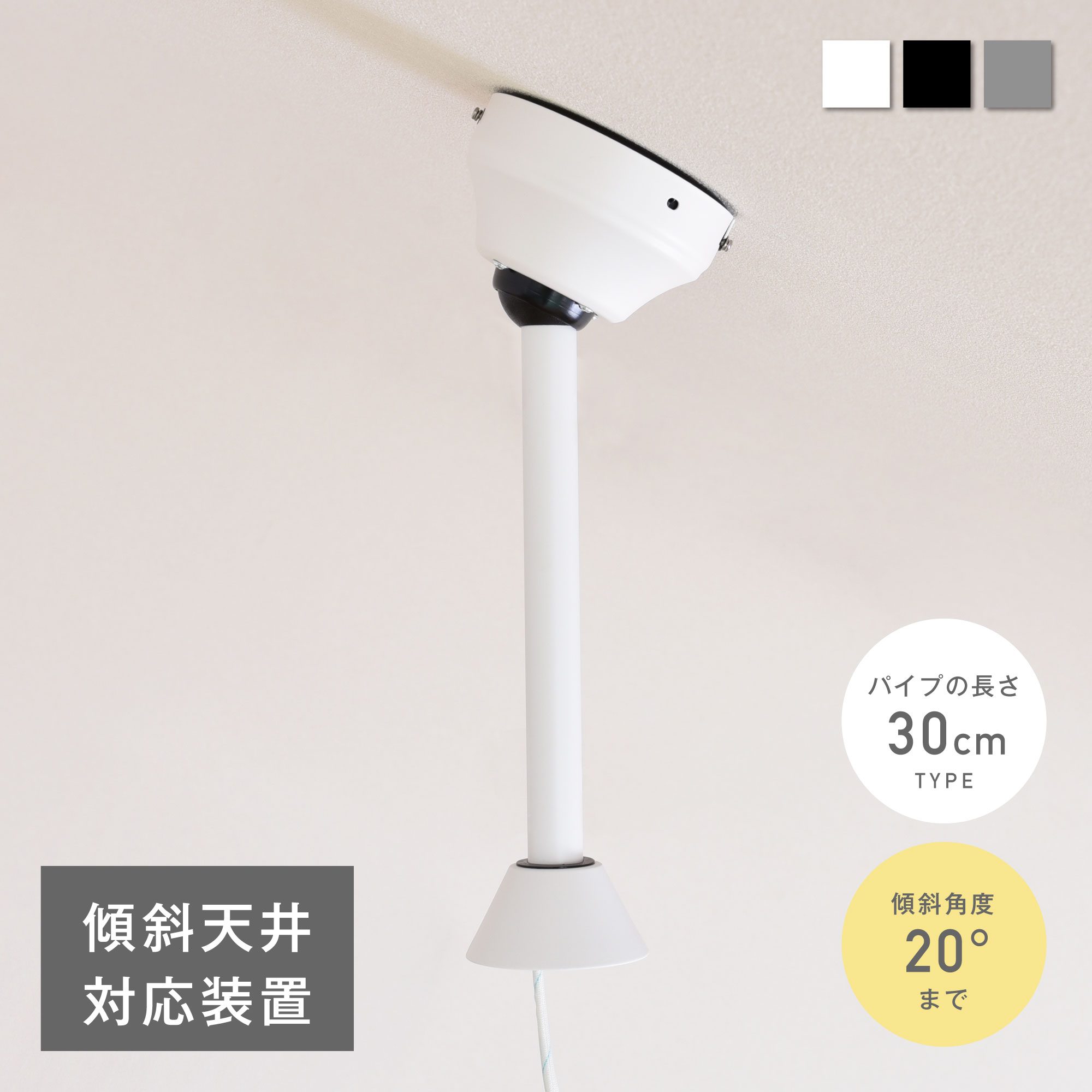 傾斜天井専用装置 シーリングファンライト用 傾斜天井 取り付け装置 勾配天井 吹き抜け天井 斜めの天井 屋根裏部屋 用 簡易取付延長パイプ 長さ30cm