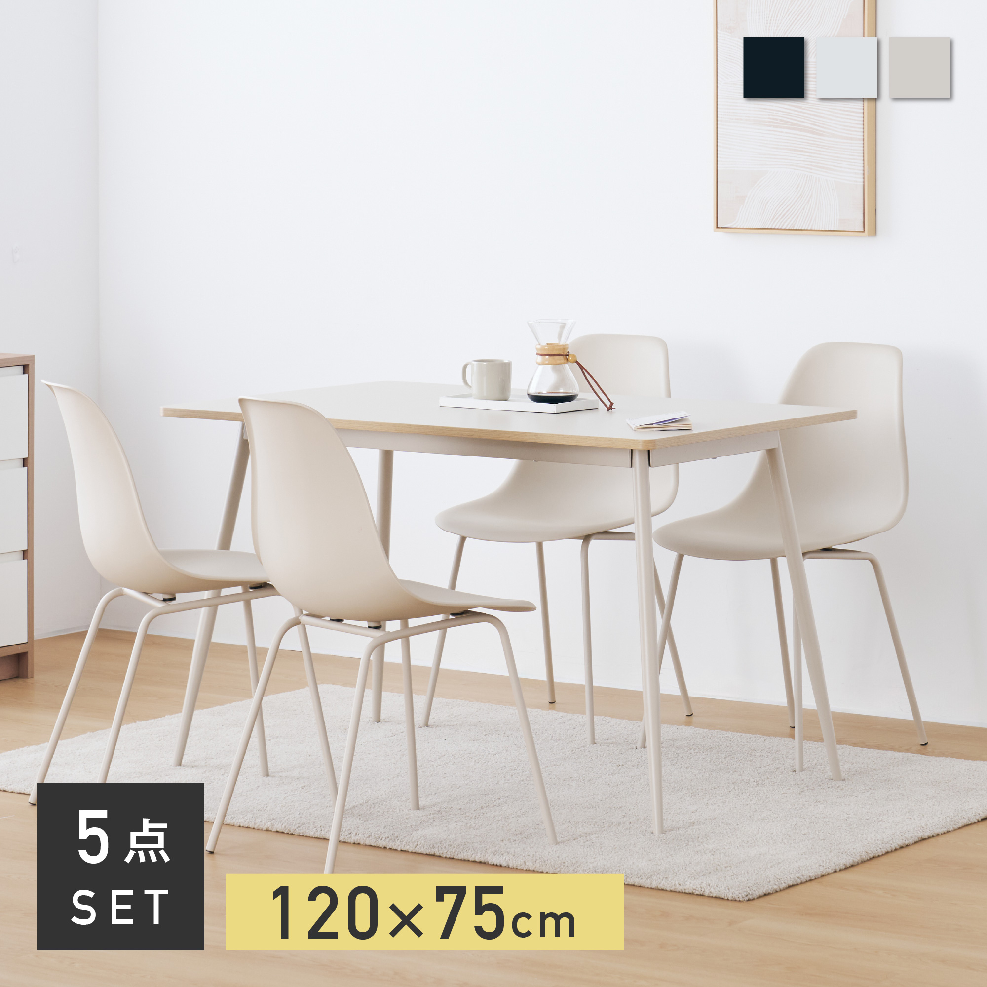 ダイニングセットPulico-T120(プリコ-T120)は、日々の暮らしに彩りを添えるデザイン性と特別感を兼ね備えたダイニングセットです。バイカラー配色の天板は、さりげない立体感と特別感を演出し、異素材ミックスが空間のアクセントとなります。広々としたテーブルは4人でもゆったりと使え、足元すっきりのシンプルな構造で快適なダイニング空間を提供します。チェアは体にフィットする3次元曲面の座面を採用し、長時間座っても快適な使用感を実現しました。軽量で強度に優れたポリプロピレン素材を使用し、安心してお使いいただける頑丈設計です。さらに、傷や汚れに強いメラミン樹脂化粧板と粉体塗装を施し、お手入れも簡単です。工具不要で簡単に組み立てられる設計で、すぐに新しいダイニング空間を楽しむことができます。ブラック、ホワイト、グレージュの3色展開で、お部屋のインテリアに合わせてお選びいただけます。