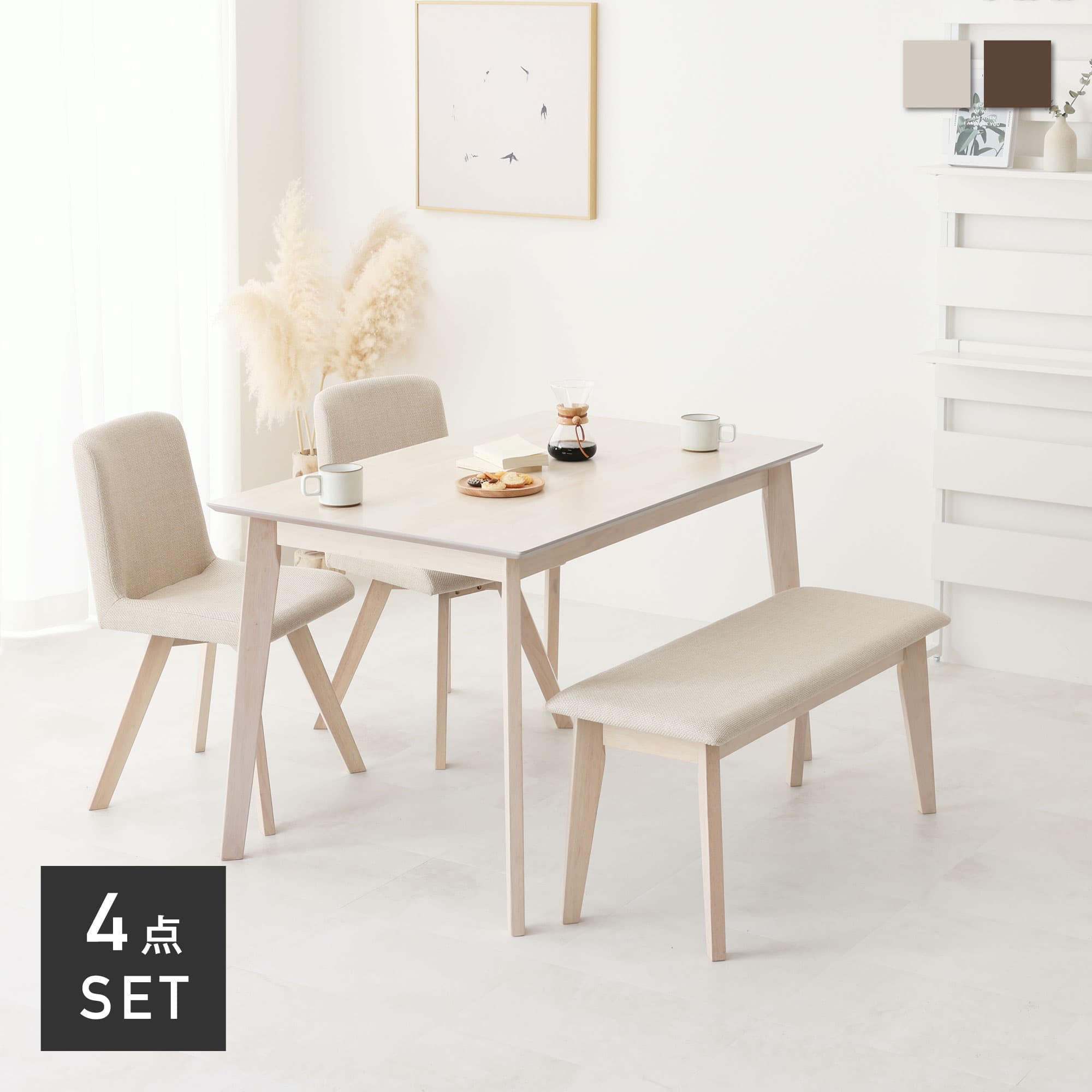 食卓 テーブルセット 長方形 北欧 北欧風 モダン ナチュラル シンプル カフェ風 カフェ 肘なし ファブリック 木 ラバーウッド ウッド ダイニング リビング コンパクト 省スペース テーブルセット 4人 ベンチチェア ダイニングテーブル 4人用 幅120cm 食卓 ベンチ チェア ダイニングチェア おしゃれ 木製 安定感 頑丈 長時間 座り心地 快適 おすすめ 安い コンパクト 木目調 お掃除楽