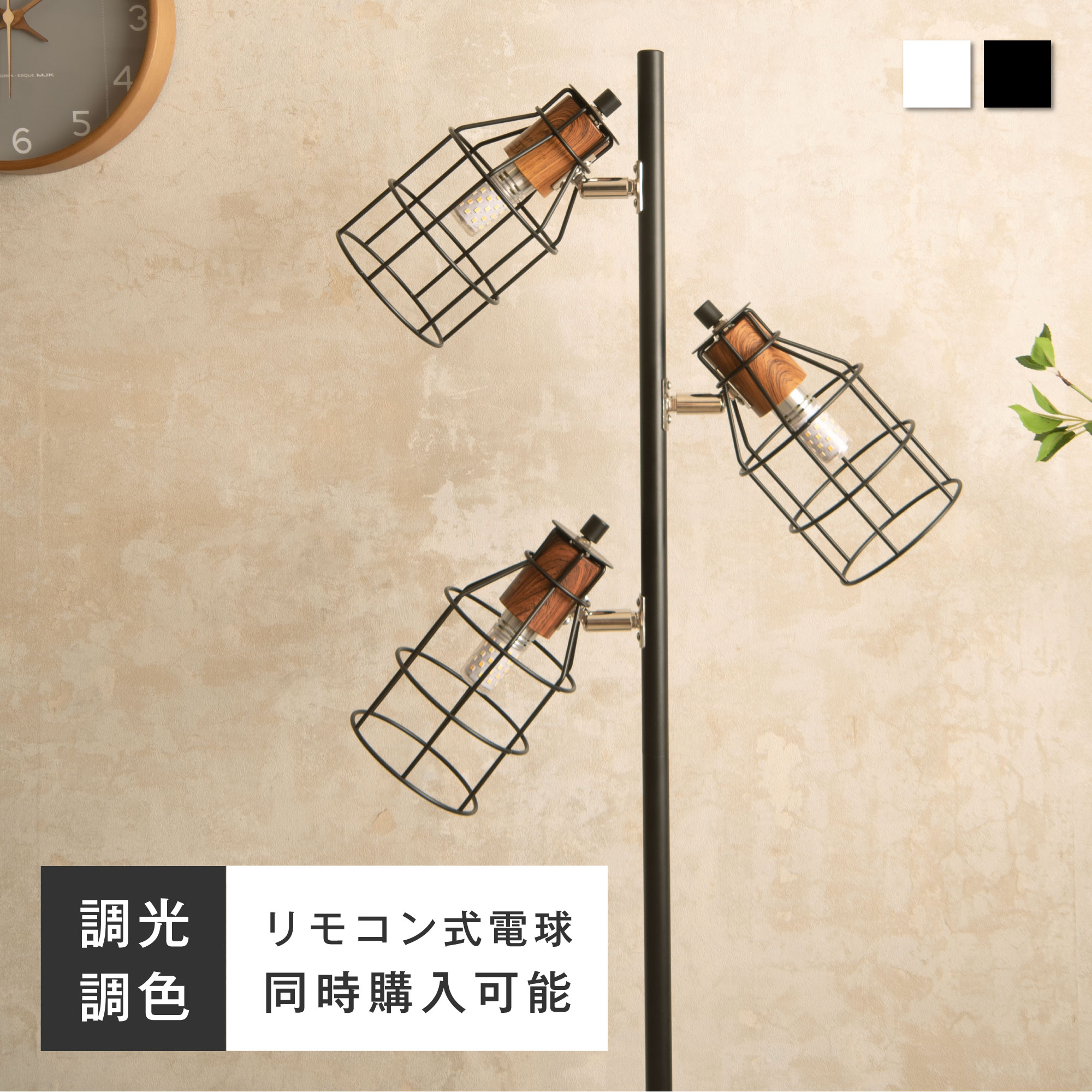 一般的なスタンドライトとは違い、対象物を照らすというよりは、光源そのものを楽しむ間接照明。本体のソケットカバーは、スチールにホワイトウッド調のプリントが施されており、アンティーク調の、ややシャビー感も感じさせる雰囲気になっています。チーク材をイメージした杢目柄はとても美しく、素直な表情をしており、濃淡のコントラストがはっきりと現れつつも過度な主張はなく、落ち着いた安心感のある美しさを表現しています。メッシュシェードの角度を変えることによって、ランプから出る光と影が天井や壁面に映し出されておしゃれな雰囲気が醸し出されます。
