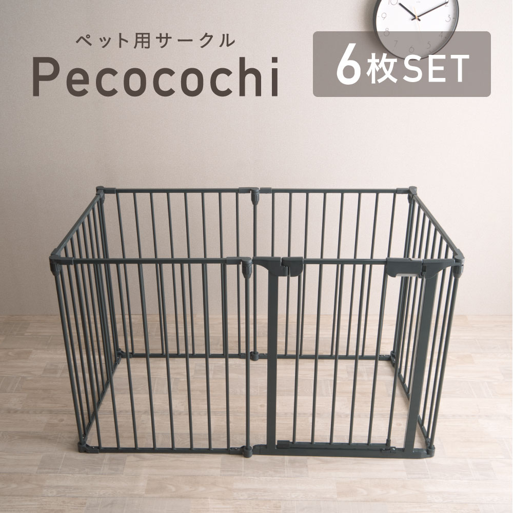 ペット用サークル ドア付 折りたたみ可能 犬 猫 うさぎ フェンス 室内 屋外 広い ケージ ゲート バリア ゲート Pecocochi ペココチ ドア付本体6枚セット