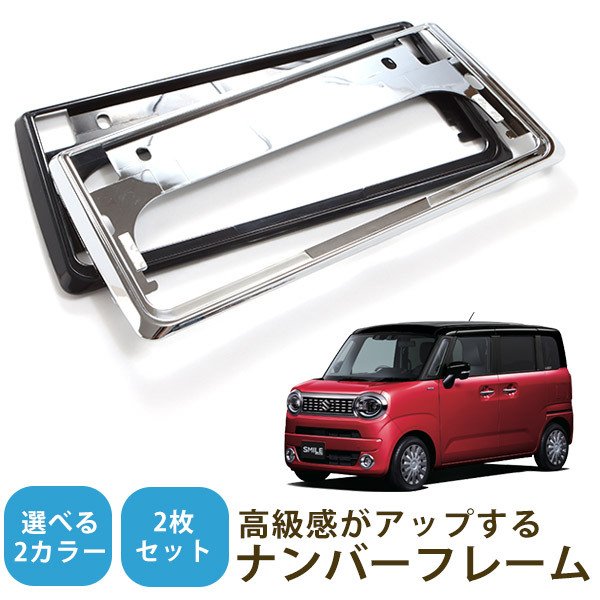 【新基準対応】 ワゴンR スマイル ナンバーフレーム メッキシルバー ブラック 前後セット ナンバープレート ナンバー クローム 軽自動車