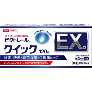 ビタトレールR クイックEX錠は、熱や痛み、炎症を速く抑えるイブプロフェンを配合しています。