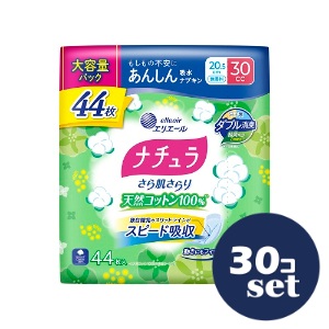 「セット販売」「大王製紙」ナチュラさら肌さらり天然コットン100% あんしん吸水ナプキン 20.5cm 30cc 大容量 44枚 30個セット