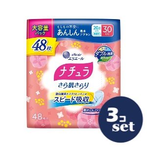 「セット販売」「大王製紙」ナチュラさら肌さらり あんしん吸水ナプキン 20.5cm 30cc 大容量 48枚 3個セット