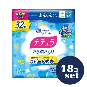 「セット販売」「大王製紙」ナチュラさら肌さらり あんしん吸水ナプキン 26cm 65cc 大容量 32枚 18個セット