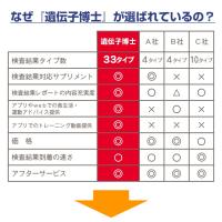 一生変わらない遺伝的体質を調べ、体質の特徴や、生活改善のアドバイスを知ることができます。
