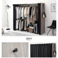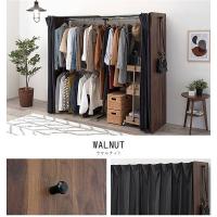 伸縮式 クローゼット ハンガーラック 幅118〜195cm 目隠しカーテン 2段吊り サイドフック付 洋服 コート 衣装 掛け タンス 服 収納 家具 送料無料