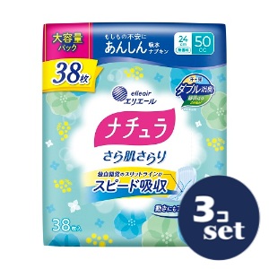「セット販売」「大王製紙」ナチュラさら肌さらり あんしん吸水ナプキン 24cm 50cc 大容量 38枚 3個セット