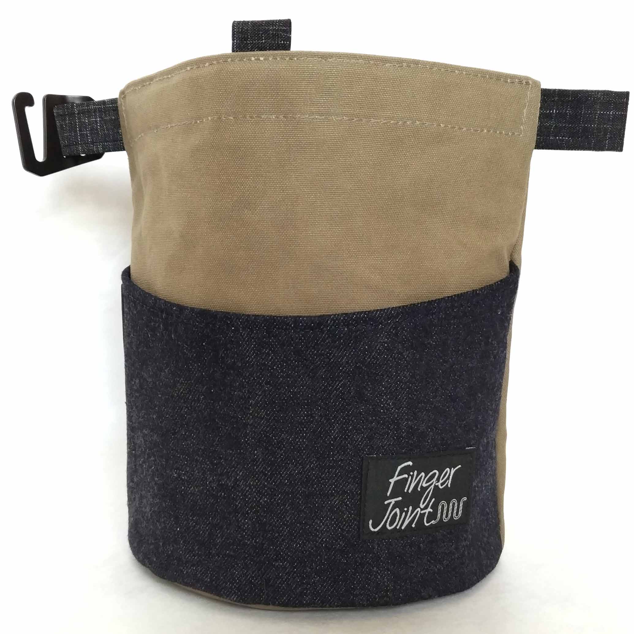 フィンガージョイント・ボルダリング置き型チョークバッグ / チョークバケットA-岡山デニム×パラフィン帆布(グレー×黒織)