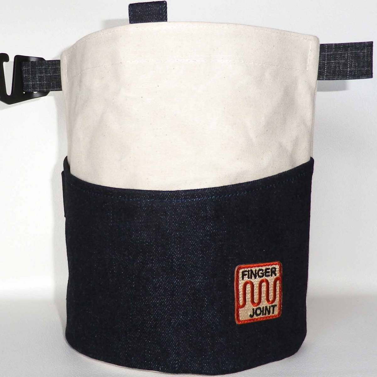 フィンガージョイント・ボルダリング置き型チョークバッグ / チョークバケットA-岡山デニム×パラフィン帆布(生成×赤)