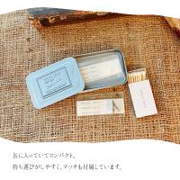 缶に入っていて持ち運びがしやすく、マッチも付属しているので旅先でも気軽に楽しむことができます。