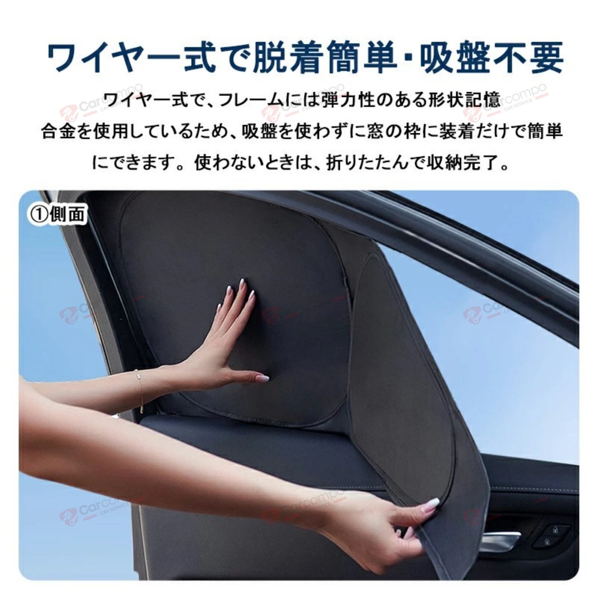 | 吸盤不要、簡単取り付け | フレームには形状記憶合金を採用し、ワイヤー式で窓枠にはめ込むだけの簡単装着。工具や吸盤は不要で、手軽に取り付け可能です。