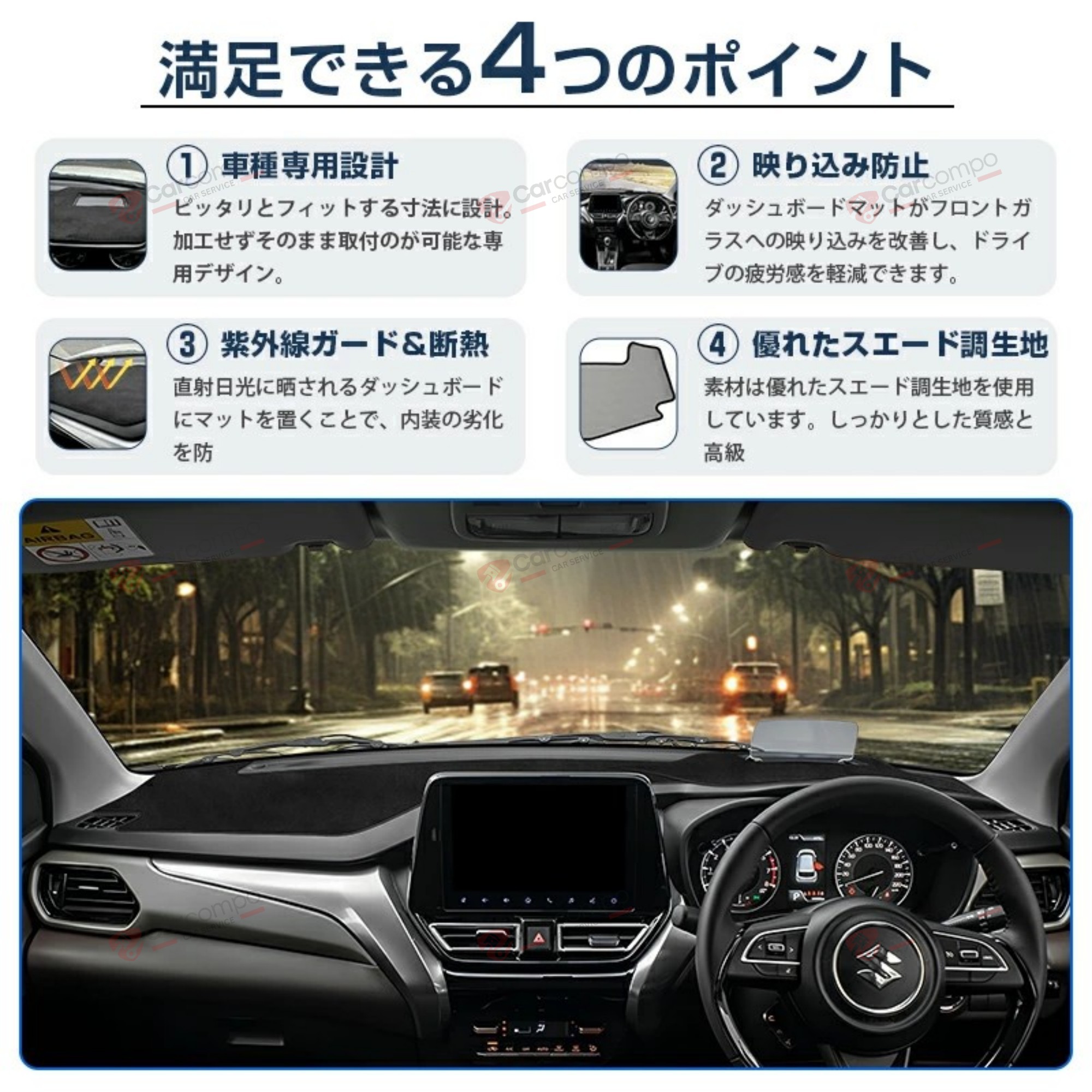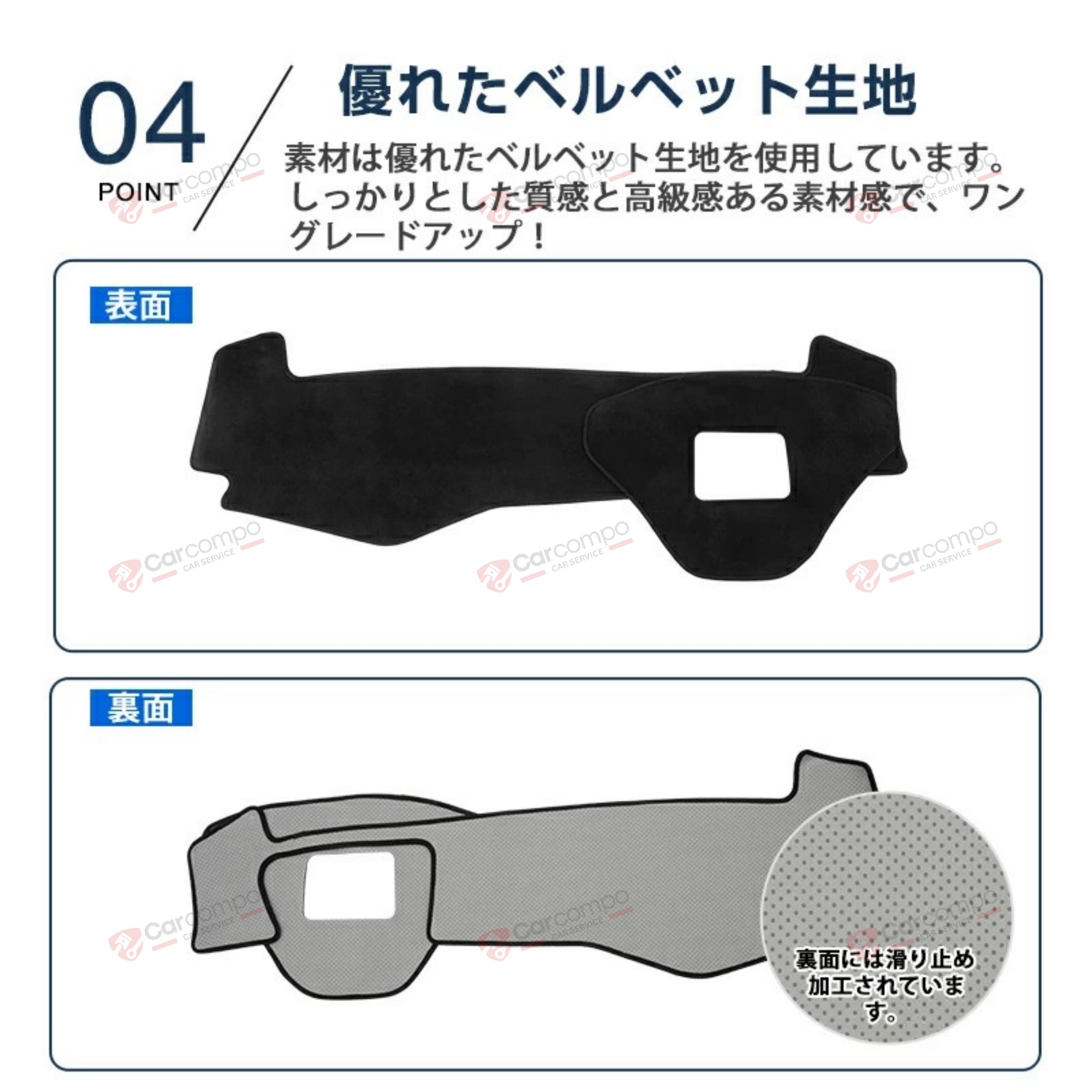 使用頻度の高いダッシュボードをキズや汚れからしっかり保護!滑り止め加工によりズレを防ぎ、大切なお車を美しく保ちます。