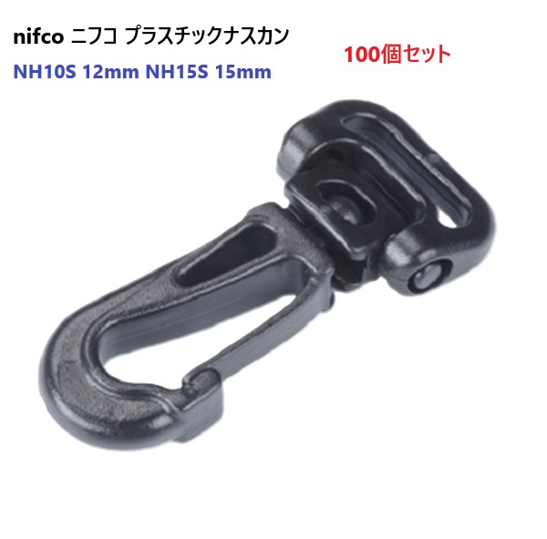 100個セット 15ミリ ニフコ nifco ナスカン フック NH15S クロ 回転機能付き プラスチックナスカン フック NH15S-02