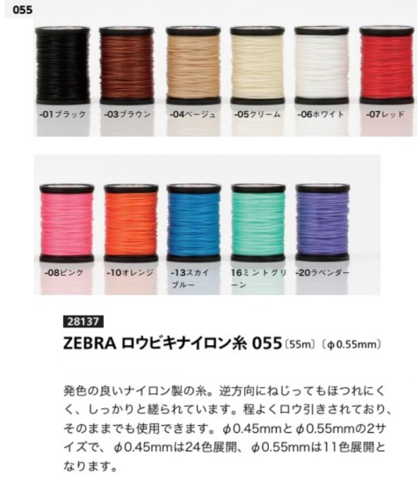 055 55メートル 手縫い用 ZEBRA ロウビキナイロン糸 クラフト社 28137