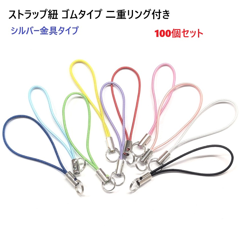 100個セット 携帯ストラップ金具ゴムタイプ二重リング付きS77000NI ストラップ スマホ
