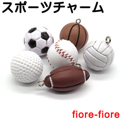 Sサイズ スポーツチャーム キーホルダーチャーム サッカー、バスケットボール、野球、バレーボール、ゴルフ、テニスボール、バドミントン のスポーツチャーム