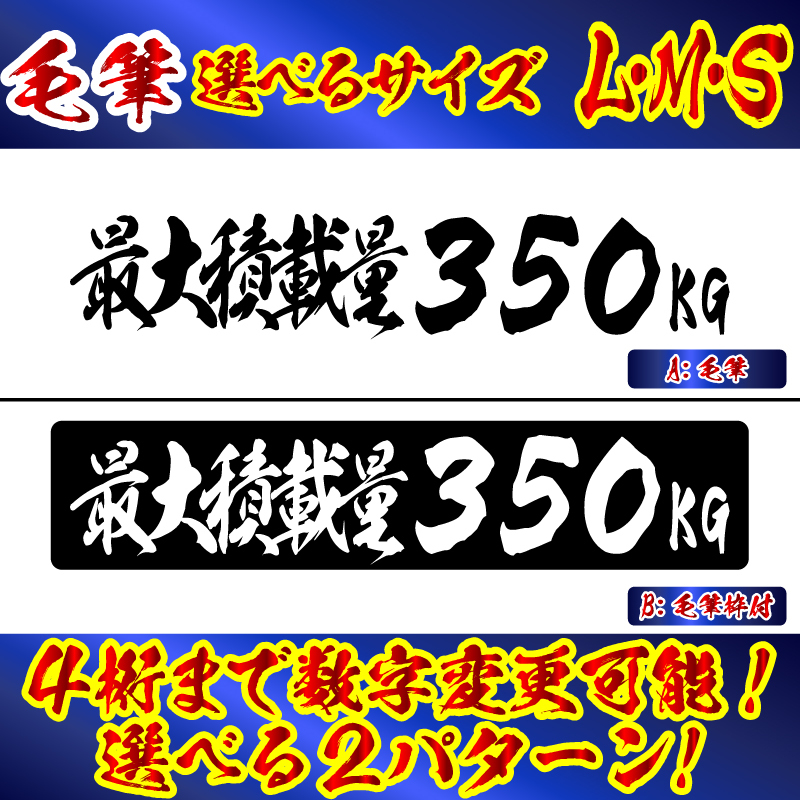 最大積載量 毛筆 ステッカー 選べるカラーと 数字変更可 S/M/L トラック 車 クルマ 軽自動車 軽トラ