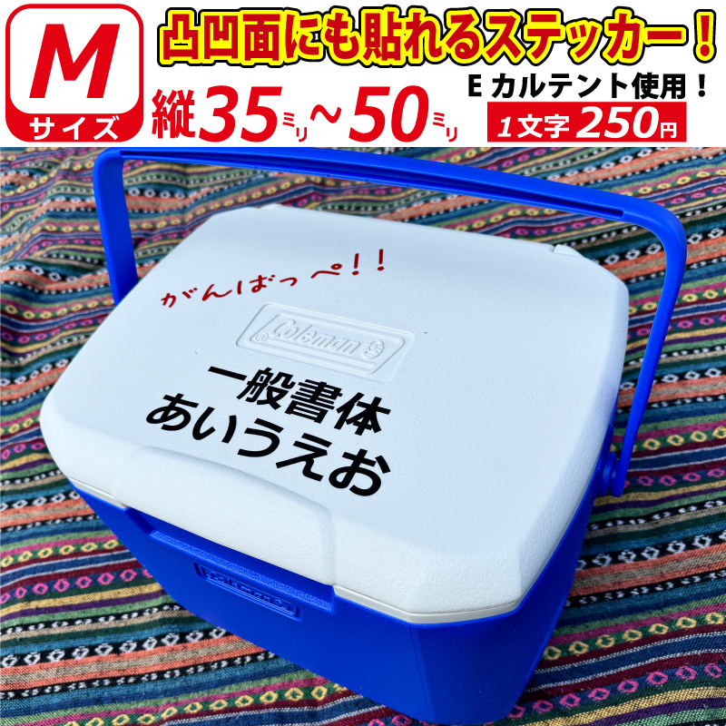 凸凹面なクーラーボックスにも貼れる! 一般書体 お好きな 文字 名前 ステッカー シール Mサイズ選べる書体とカラーとサイズ 野球 サッカー バスケ バレー