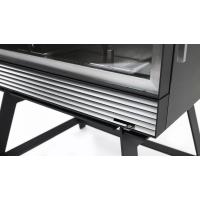 FIREGRAPHIXの薪ストーブは、どの様なフィールドでも調和を醸し出し、炎の美しさを視覚的に最大限に活かせるようシンプルでミニマムなデザインが特徴です。BLISS-Tiもそれらを踏襲しつつ、チタン素材が持つシャープさをより引き出すために直線的なデザインを採用しました。吸気部はルーバーを用い職人が1羽1羽溶接しエッジな印象に。扉部分はガラス面を内側にセットバックさせることでフレーム自体が細く見えるような仕掛けを持たせるなど、細部にまでこだわり抜いたデザインとなっています。