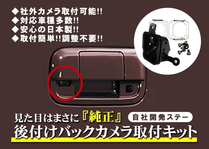 | 商品内容 | ・カメラ取付ケース ・取付金具 2種類 ・スペーサー 6本 ・説明書 ※本バックカメラ取付キットには、バックドアハンドル・バックカメラは付属しません。 |
