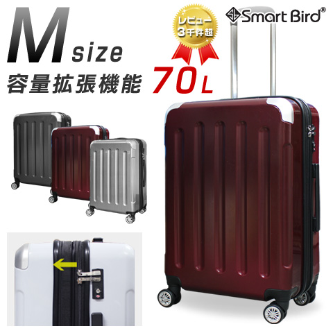 スーツケース Mサイズ 超軽量 容量拡張機能付き キャリーケース トランク 旅行用 バッグ 約70L ダブルキャスター TSA 中型 3泊 4泊 5泊 6泊 6262-M
