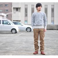 そのまま復刻をした場合ヴィンテージ・スウェットにありがちな身幅やアームホールが広くかがむと背中が見えるくらい短くなった着丈のものが多く、現代のファッションには合わせにくい欠点がありますが、そこを修正しやや細身のシルエットやアームホールでタイトなアウターの下に重ね着してもごろつかずに快適に着ることができ、着丈も非常にバランス良く出来ています。