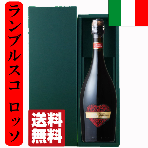 【送料無料・風呂敷包装無料】 ハートのラベルが可愛い! イタリア・ランブルスコ 泡赤 甘口 750mlギフトセット(豪華ギフト箱入り)